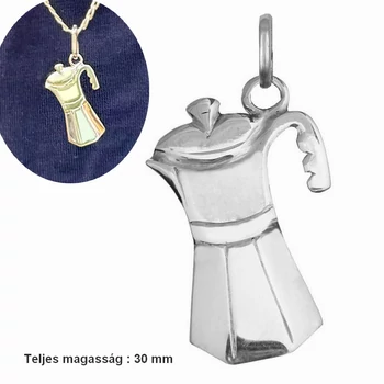Kotyogós kávéfőző, mokka főző medál, ezüst ékszer ( közepes méret )