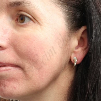 Karika jellegű köves fülbevaló, megnyúlt füllyukat eltakaró arany ékszer