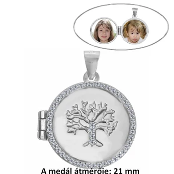 Fényképtaró nyitható életfás medál, ezüst ékszer
