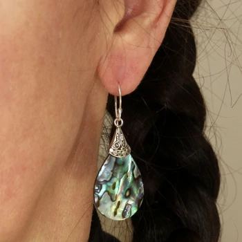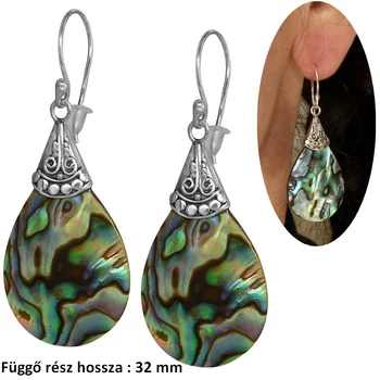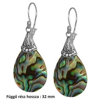 Pávakagyló Paua Abalone fülbevaló, ezüst ékszer