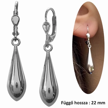 Csepp lógós fülbevaló, fehér arany ékszer erős patent zárral