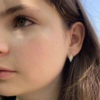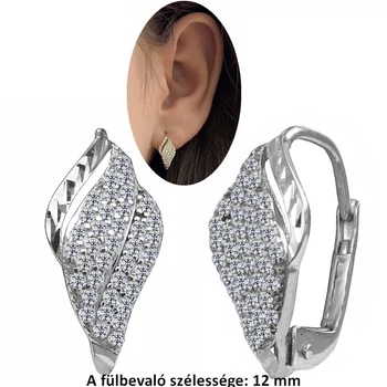 Erős patent záras csillogó fülbevaló, fehér arany ékszer