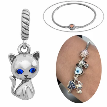 Charm cica, medál, ezüst ékszer