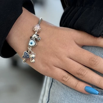 Kigyólánc karkötő charmokkal szerelhető, ezüst ékszer