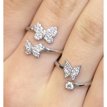 Állítható méretű pillangós gyűrű, ezüst ékszer