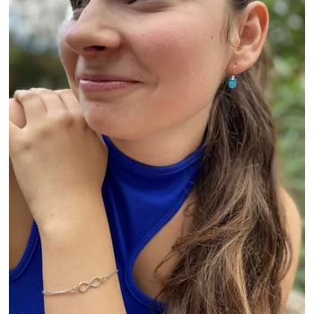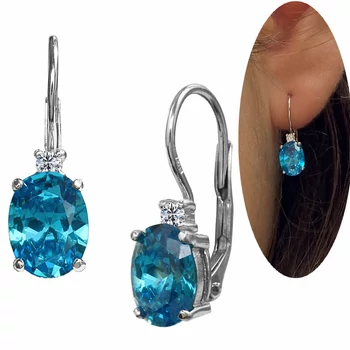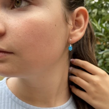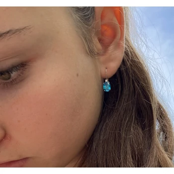 Kék köves erős patent záras fülbevaló, fehér arany ékszer