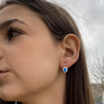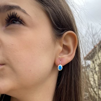 Opál köves patent záras fülbevaló, ezüst ékszer