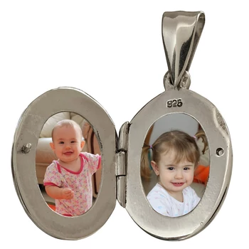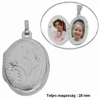 Fényképtartó nyitható ovális medál, ezüst ékszer
