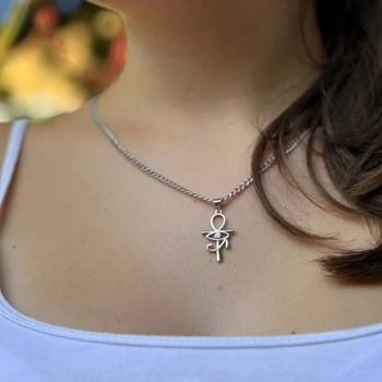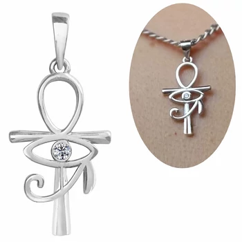 Ankh egyiptomi kereszt hórusz szemmel, védő ezüst ékszer