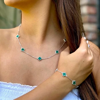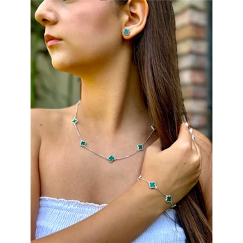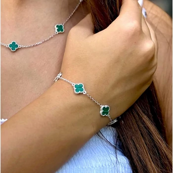 Négylevelű lóherékkel díszített karkötő, ezüst ékszer