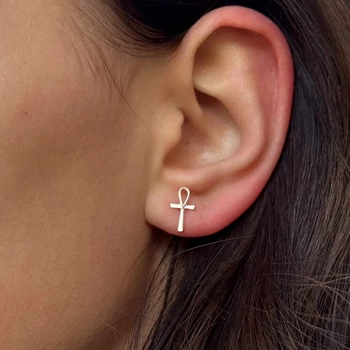 Ankh egyiptomi kereszt fülbevaló, ezüst ékszer