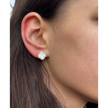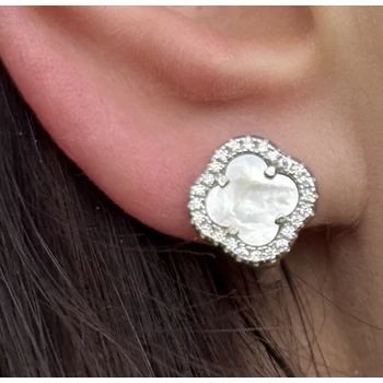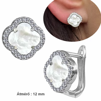 Négylevelű lóhere fülbevaló gyöngyház berakással francia zárral, ezüst ékszer
