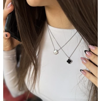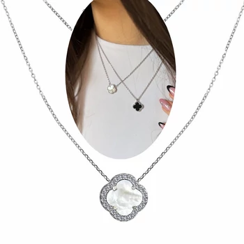 Négylevelű gyöngyház betétes lóhere medál nyaklánccal, ezüst ékszer
