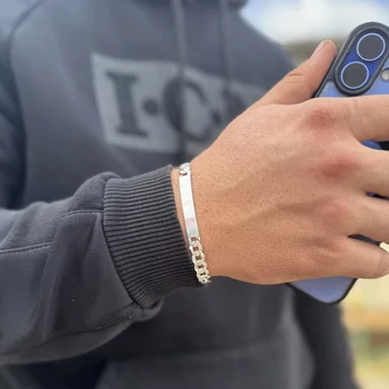 Lapbetétes férfi pancer karlánc, ezüst ékszer
