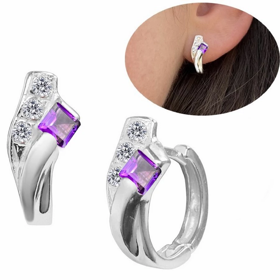 Ezt az elegáns, lila kővel díszített fülbevalót leginkább a praktikus, kényelmes ékszereket kedvelő hölgyek választják, hiszen ez a fülbevaló körben záródik, így nem kell esténként kivenni, mert alvásnál sem zavarja a fület - Női ezüst fülbevalók - Kényelmes lila köves fülbevaló, biztonságos erős zárral, ezüst ékszer |