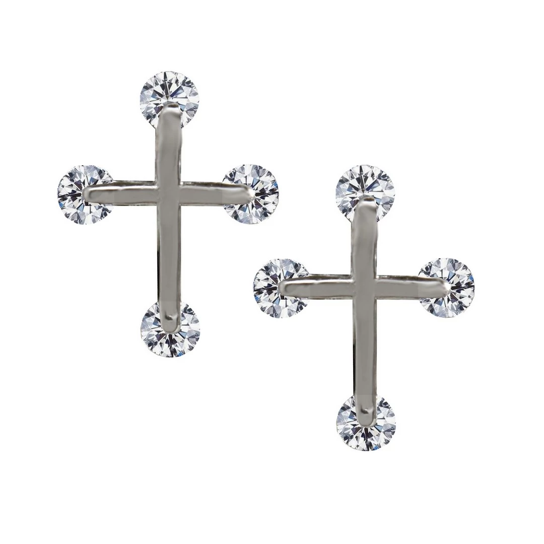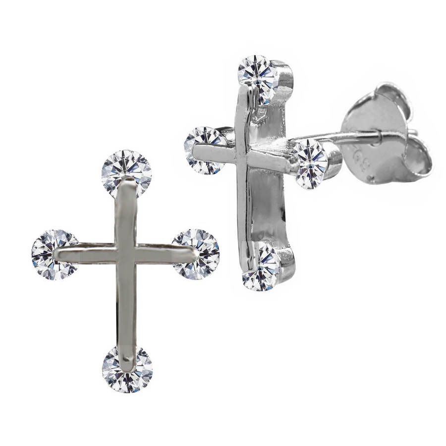 Az ezüst kereszt fülbevaló díszítése : a kereszt 4 csúcsa apró cirkónia kövekkel díszített