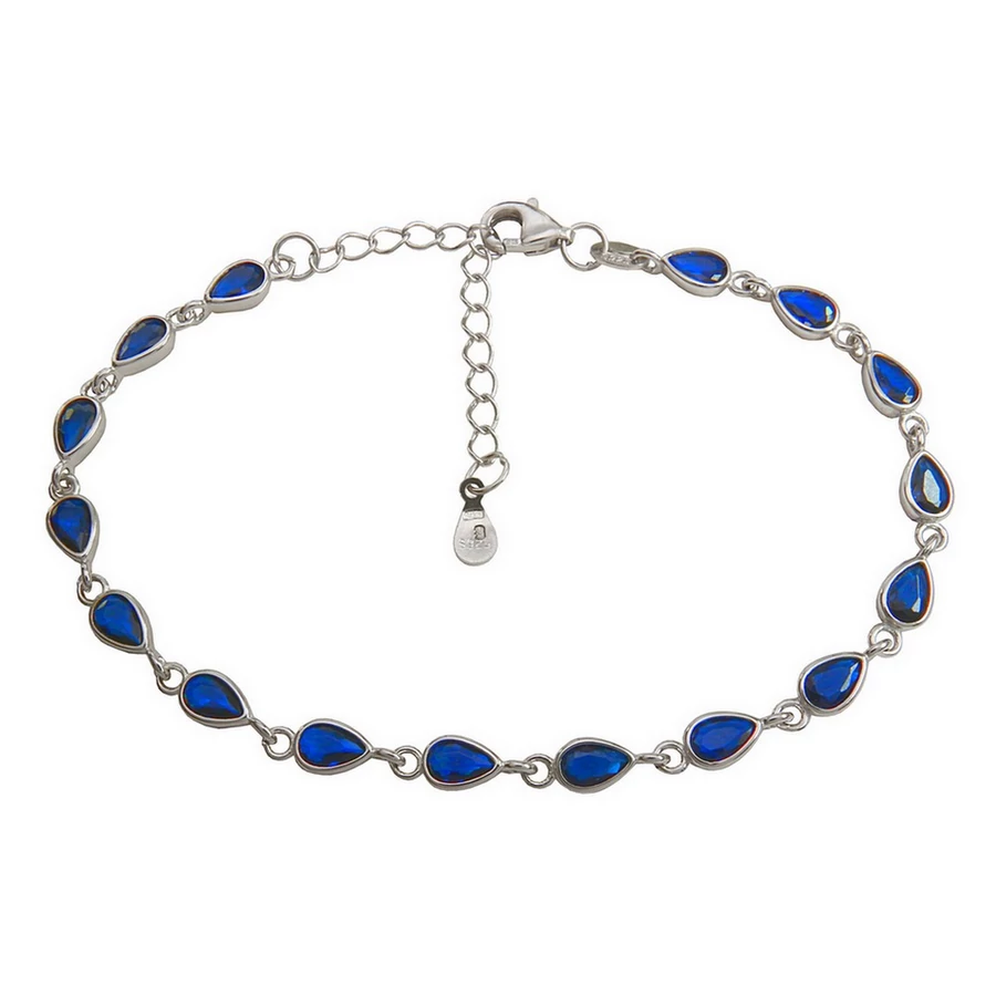 Elegáns ezüst karkötő sötétkék csepp alakú kövekkel!