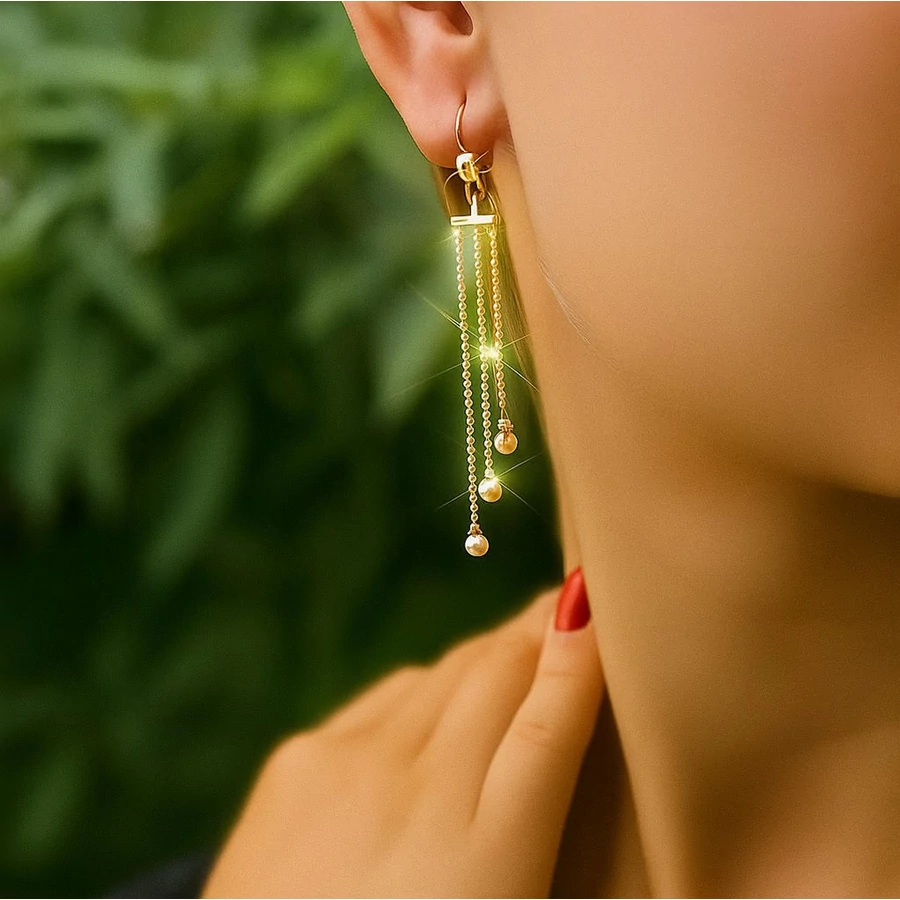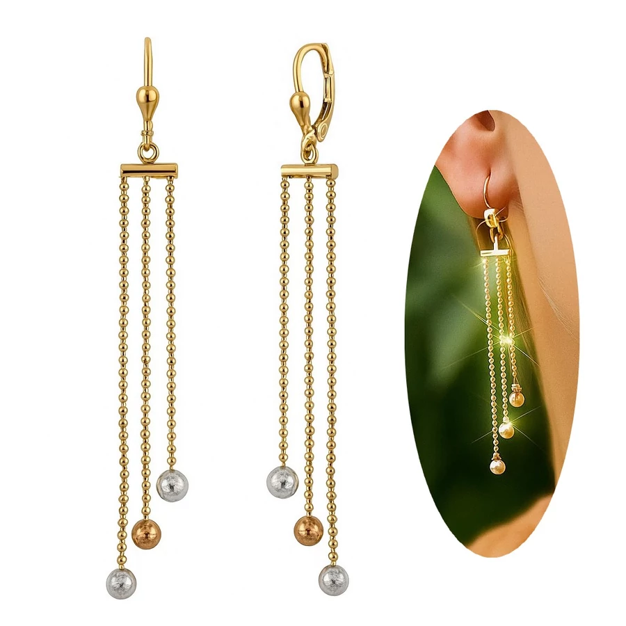 Az arany fülbevaló díszítése : 3 db vékony golyós láncon lógó gömb függő