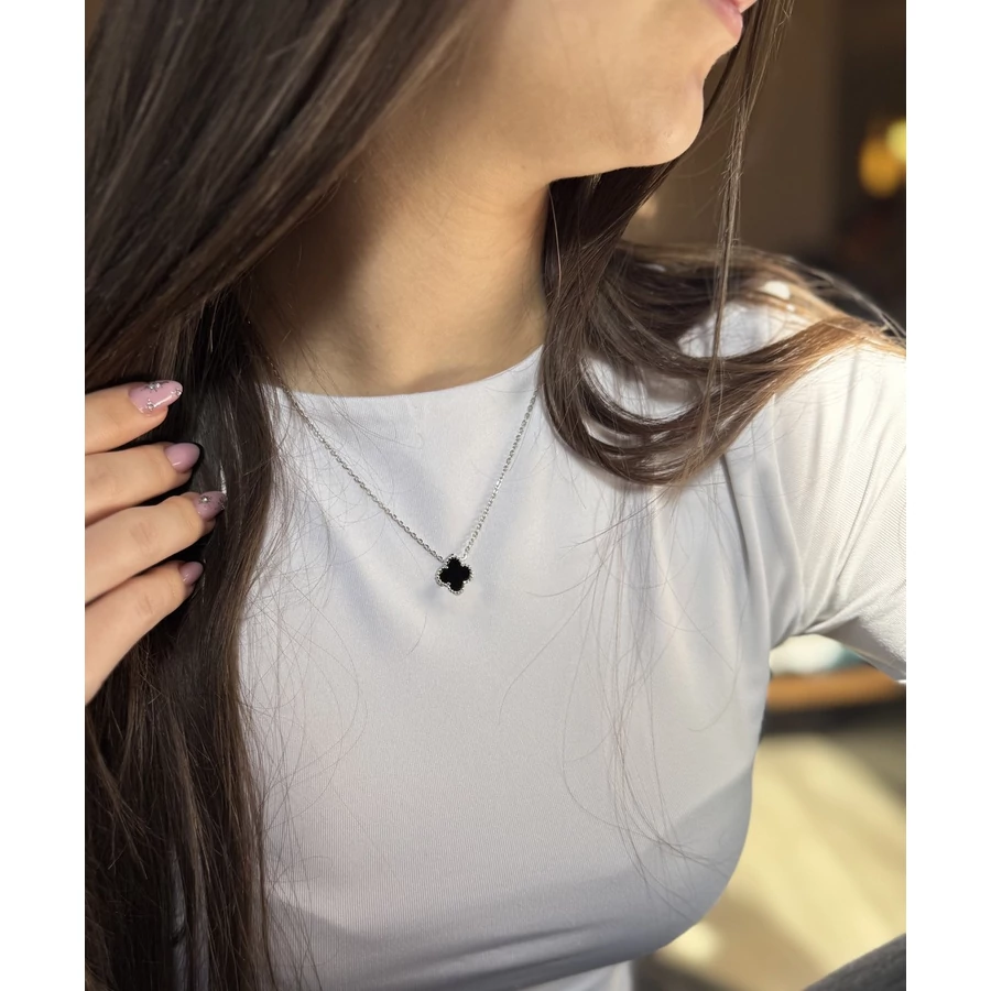 A négylevelű lóhere mintájú, fekete köves medál fiatalos és nagyon divatos! Ez az ezüst medál magában hordozza az évszázadok óta a szerencse jelképeként számon tartott négylevelű lóhere misztikumát ! - Ajándék ötletek - Négylevelű lóhere medál nyaklánccal, ezüst ékszer |