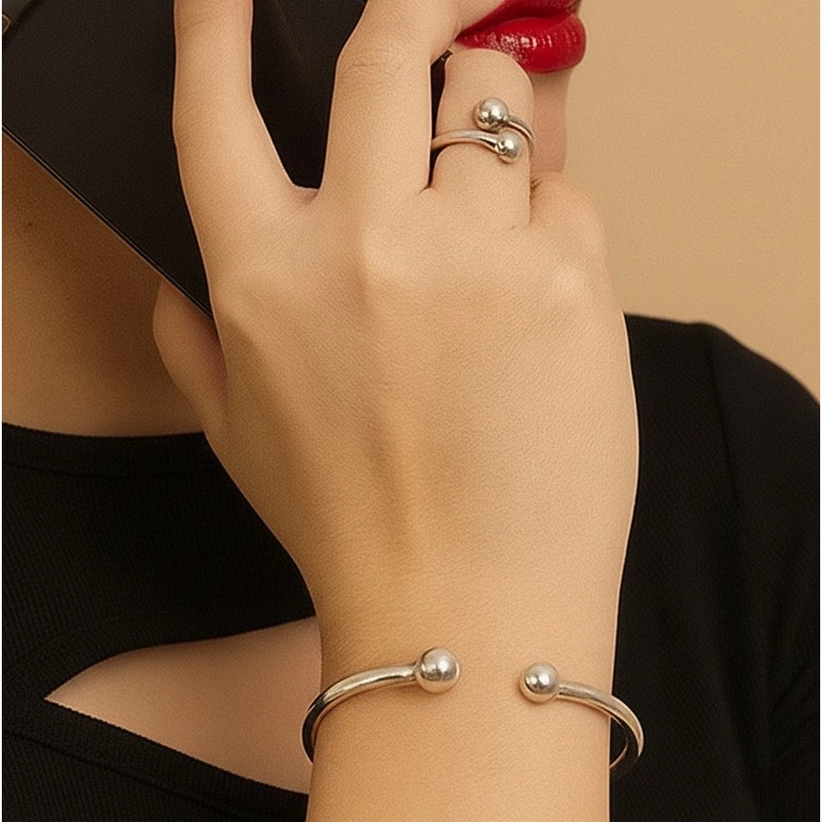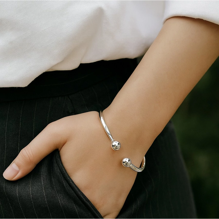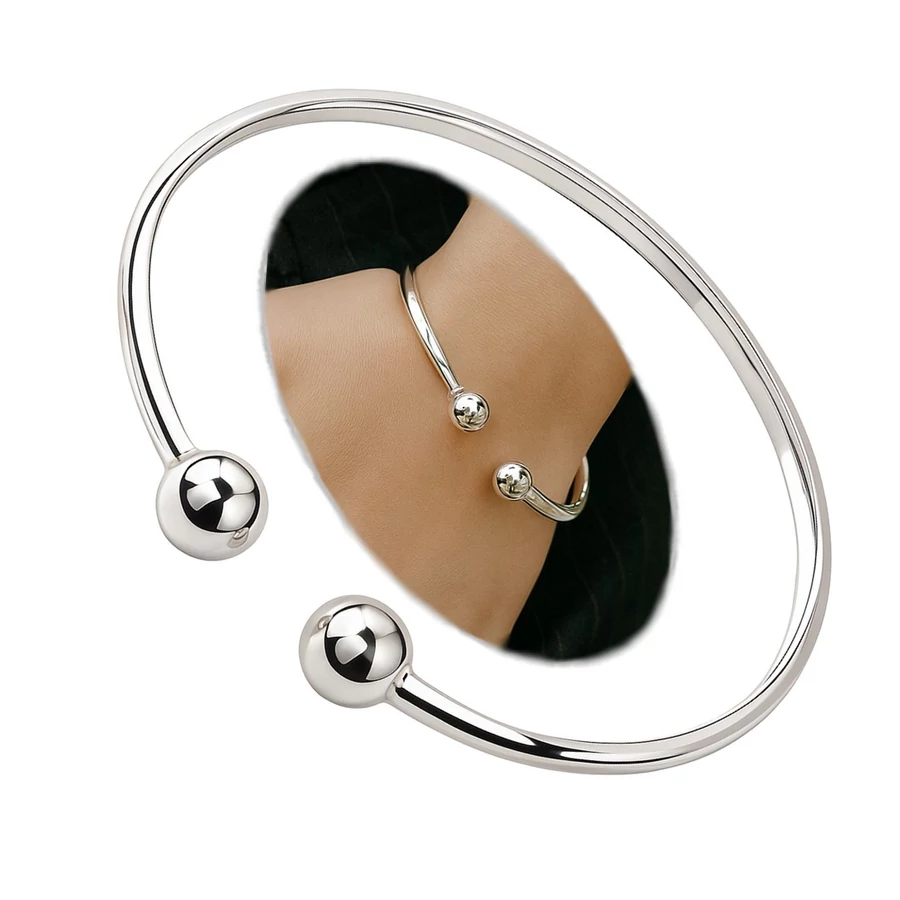 Ez a tükörfényes, nyitott kialakítású ezüst karkötő a modern minimalizmus tökéletes megtestesítője. A két végén elhelyezkedő finoman gömbölyített díszítés időtlen eleganciát kölcsönöz, miközben bármilyen öltözettel harmonikusan párosítható. - Ajándék ötletek - Nyitott gömbös karkötő, ezüst ékszer |