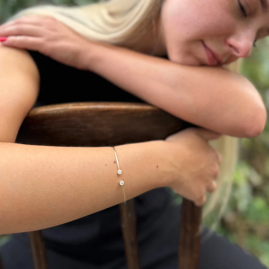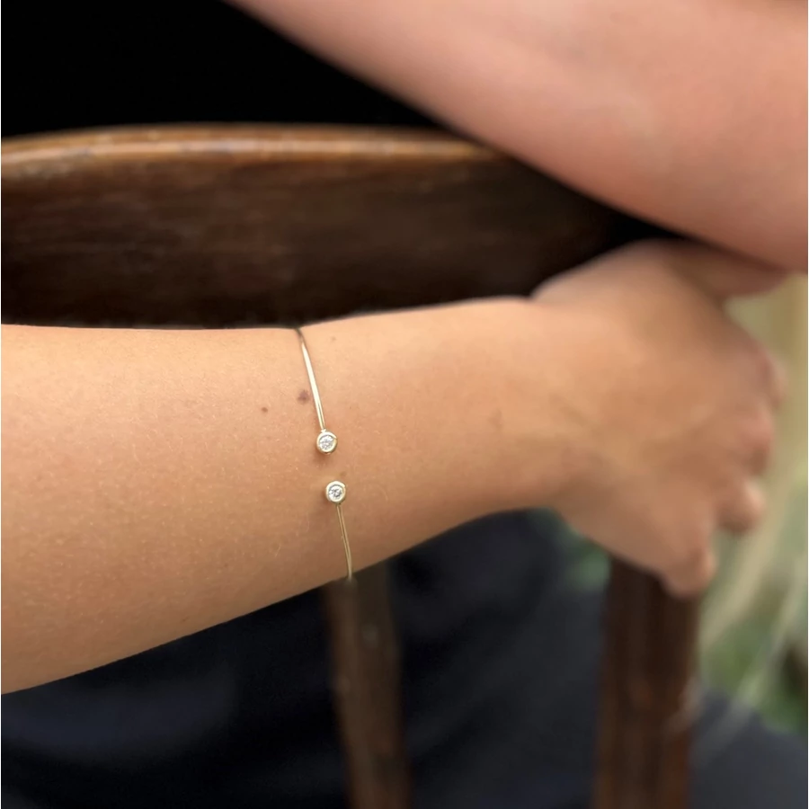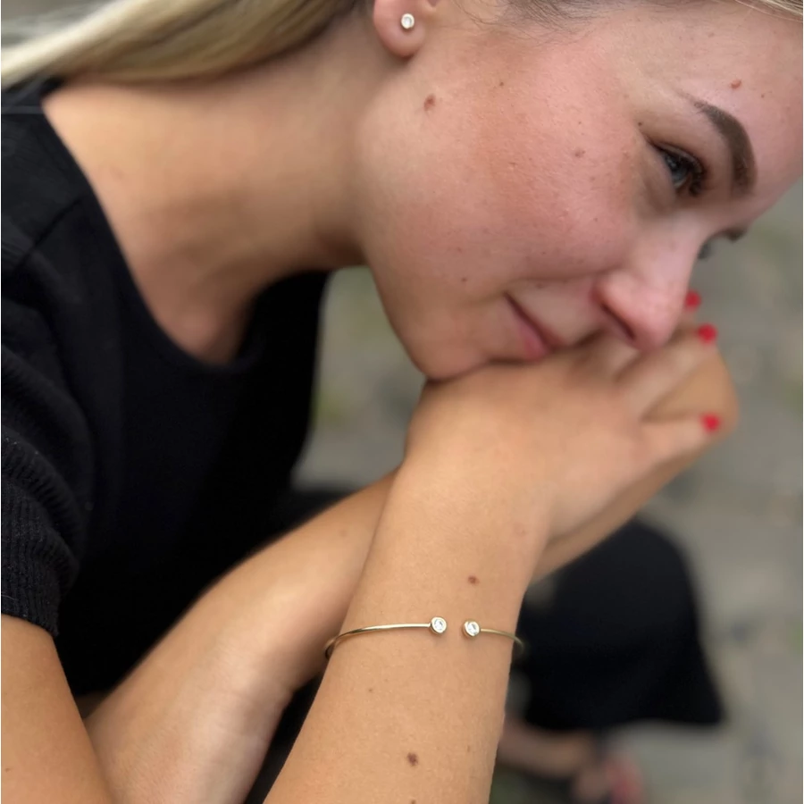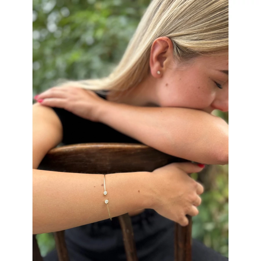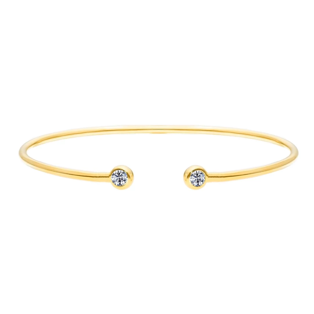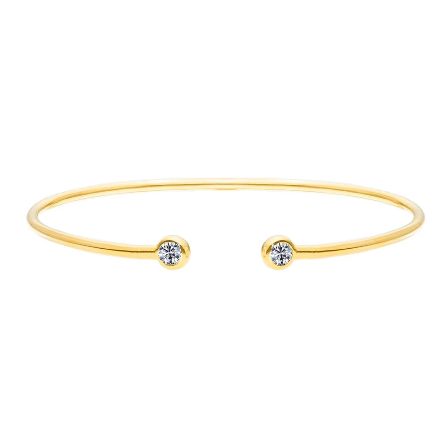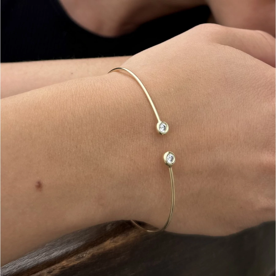 Ez a nyitott vékony cuff karkötő, melynek végein mutatós szikrázó cirkónia kövek csillognak, letisztult vonalvezetésének köszönhetően, nőiességet és diszkrét eleganciát sugall. A tömör cuff karkötő tipikusan az olyan alap kiegészítő közé tartozik, mely minden viselethez passzol, vékony, de tömör arany anyaga miatt pedig bátran viselhető a hétköznapi outfithez is - Ajándék ötletek - Nyitott tömör cuff karkötő cirkónia kövekkel, arany ékszer