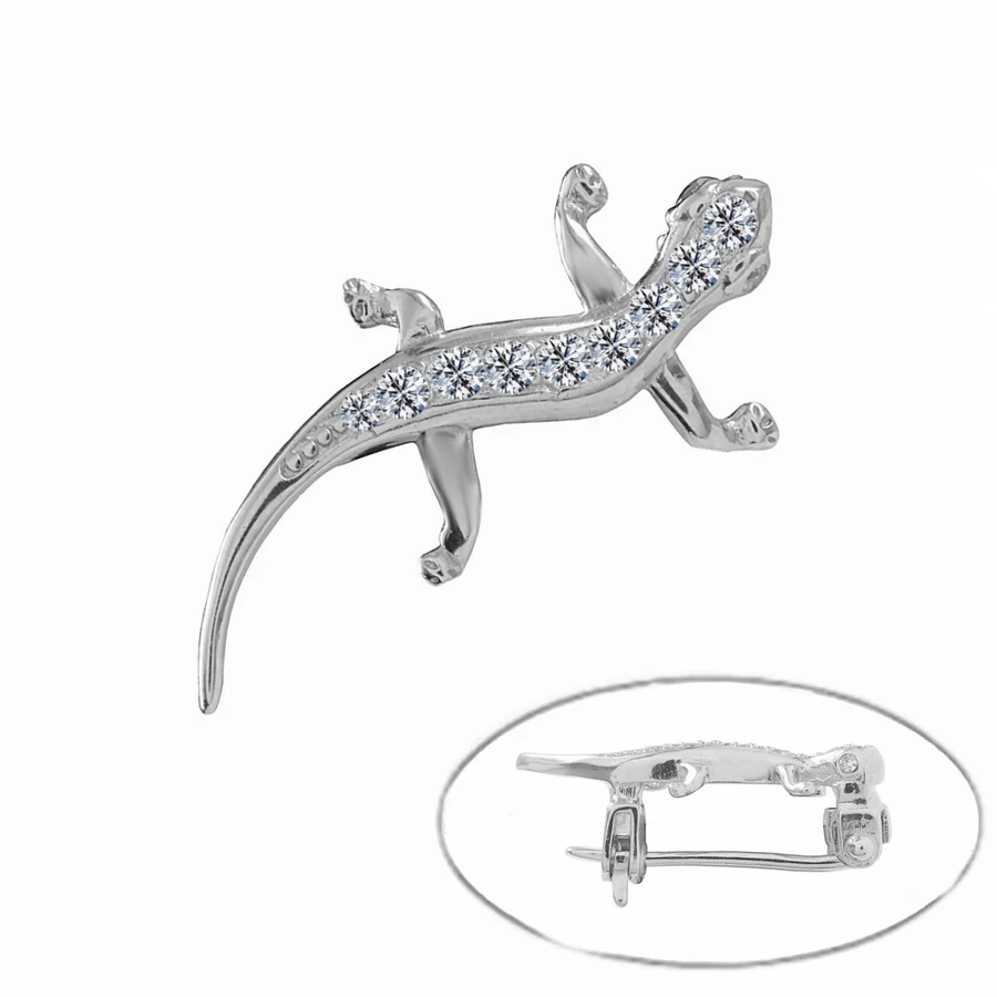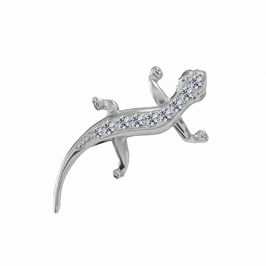 Ez a gyönyörűen csillogó pici gyík ktűző a szerencsehozó ékszereket kedvelő hölgyek kedvence, akik egy igazán jelképes utalással kívánják maguk mellett tudni a jószerencsét - Ezüst kitűzők, brossok, testékszerek - Pici gyík kitűző, ezüst bross |