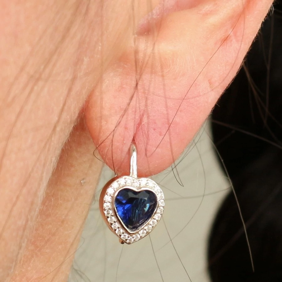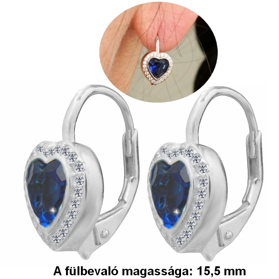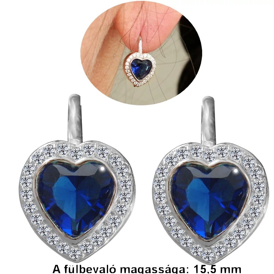 Ezt a gyönyörűen csillogó, kék köves szíves fülbevalót ajánljuk iskolás kortól fiatal hölgyeknek a biztonságos patentos záródás miatt és felnőtteknek is akik szeretik a kék szín jelentését magukon viselni. - Ajándék ötletek - Sötétkék köves szíves fülbevaló, ezüst ékszer |
