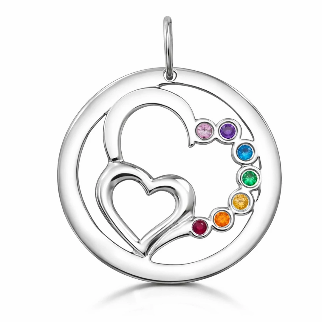 Ezüst csakra szíves medál – színes kövekkel, harmonizáló ékszer