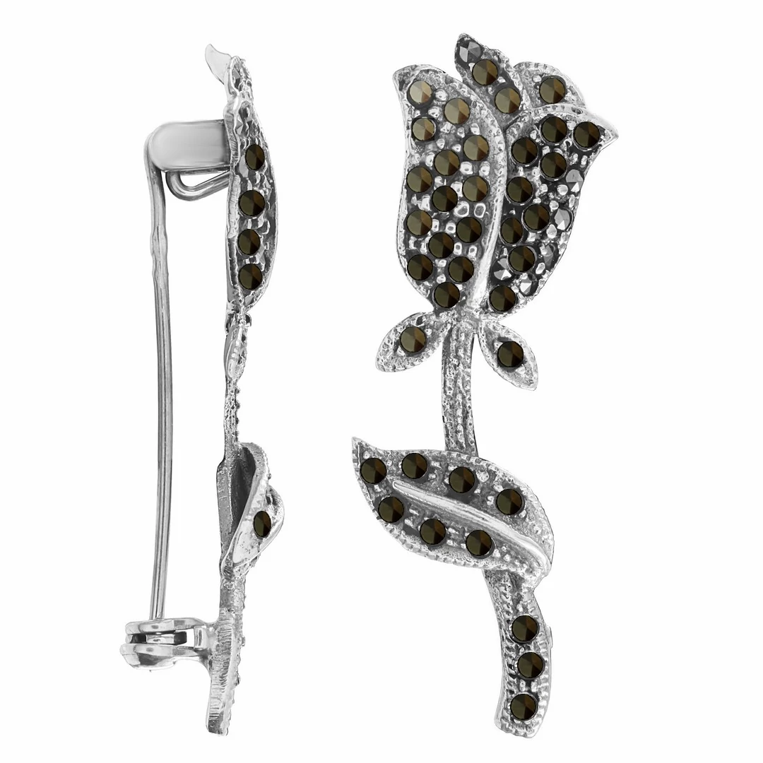 Tulipán virág kitűző markazittal, ezüst bross