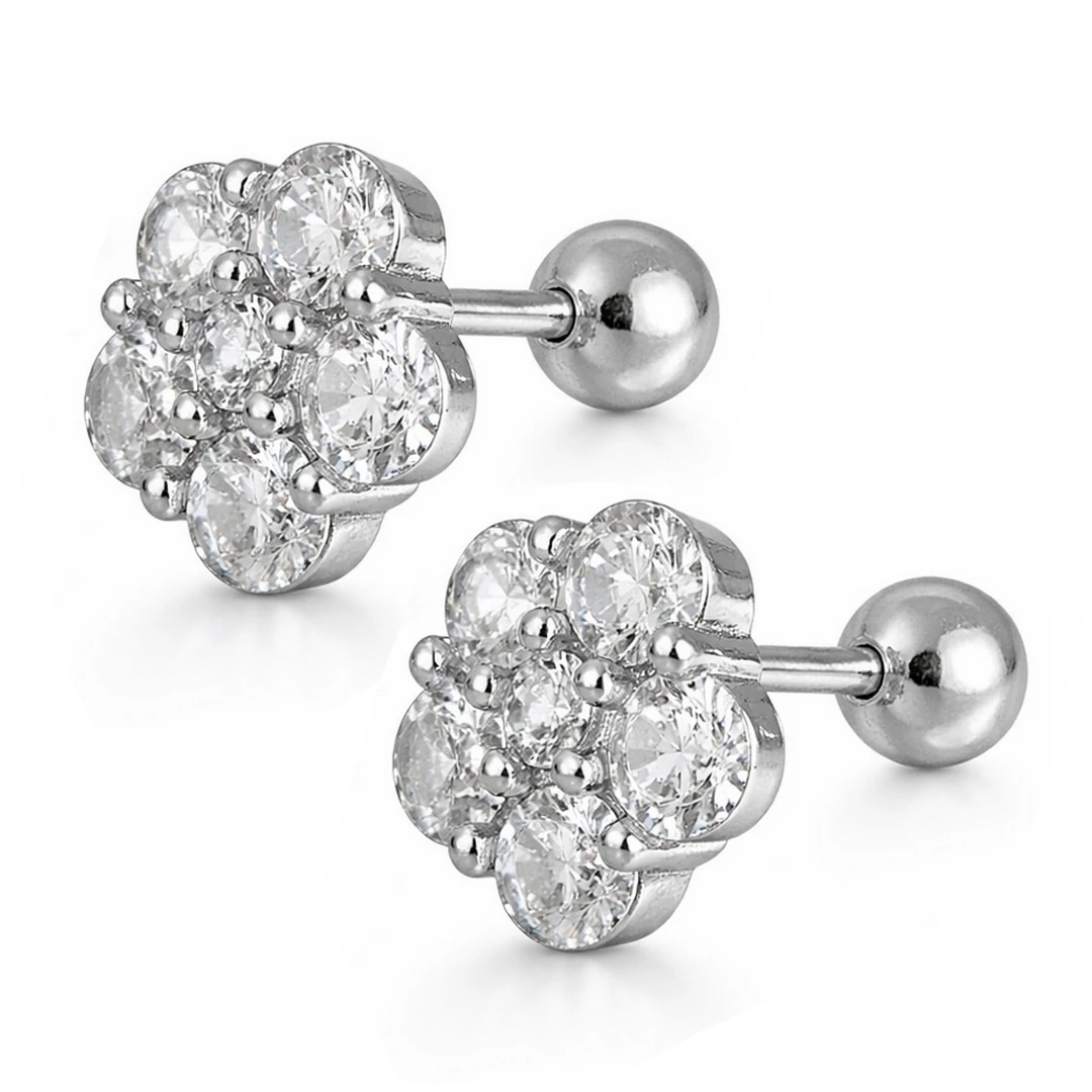 Csillogó virág alakú, biztonságos és kényelmes menetes zárral rendelkező fülbevalónkat sokszor azok a hölgyek választják, akik szeretik a mögöttes tartalommal rendelkező, szimbólum ékszereket, hiszem a virág jelképezi a szerelmet, az életörömöt.... - Női ezüst fülbevalók - Virág fülbevaló, ezüst ékszer |
