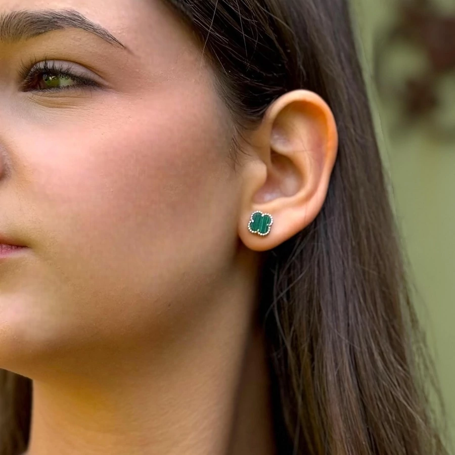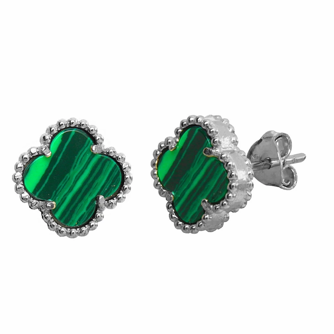 Négylevelű lóhere mintájú zöld köves fülbevalónk kedvelt szerencsehozó kabala ékszer. Amellett, hogy fiatalos és divatos, a zöld szín jótékony feszültség csökkentő, nyugtató hatását is magában hordozza. - Női ezüst fülbevalók - Zöld négylevelű lóhere fülbevaló, ezüst ékszer |